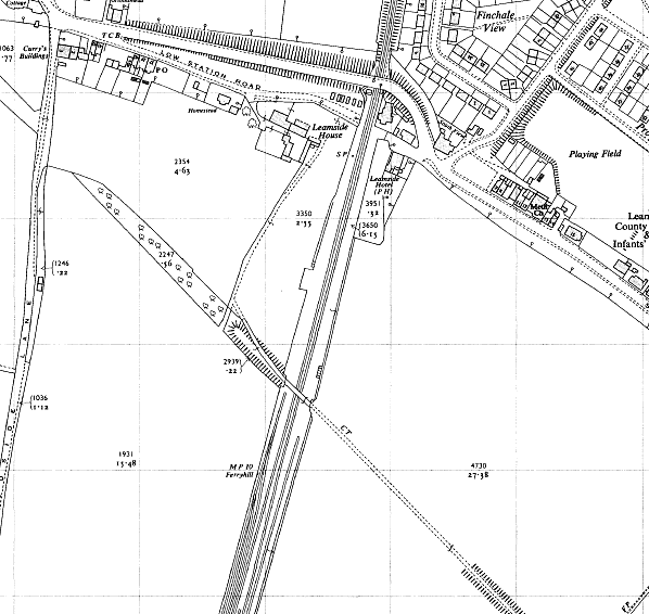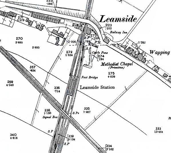 In 1912 the former North and South signal boxes were replaced with the new Leamside box, west of the lines and immediately south of the footbridge (which crossed the tracks immediately north of the platform buildings). A bridge over the southern end of the platform carried the Lambton Railway’s Belmont incline from Littletown (Lambton) Colliery. This mine closed in 1914, and the railway was lifted by 1939. Between Leamside station and Leamside Junction some 600yd south were a number of sidings. The freight facilities were on the up side between the first and second passenger stations, with a short goods dock and (in 1904) a two-ton crane. In 1913 NER statistics show that 11,228 tons of bricks and 21 wagons of livestock were handled at Leamside.