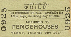 The winter 1937-38 timetable shows that Leamside’s most frequent service was on the Durham-Sunderland line, with seventeen Monday-to-Friday, 19 Saturday, and six Sunday trains to Sunderland; and eighteen weekday and six Sunday trains to Durham. Northwards to Newcastle there were seven trains on Monday-to-Friday and twelve on Saturdays, whilst from Newcastle there were eight on Monday-to-Friday, nine on Saturdays and one on Sundays. On the line to Ferryhill, which was to close to local passenger services on 28 July 1941, there were four weekday trains and one on Sundays, and five arrived from Ferryhill on weekdays. From 1947 the service between Newcastle and Leamside was all but extinguished, leaving only one southbound train calling at Leamside at 5:18 am. In Leamside’s final month of services there were nine Monday-to-Friday and ten Saturday departures to Sunderland, and eight on weekdays in the opposite direction; one Sunday train was provided in each direction. Several trains by this time omitted stops at Leamside. Passenger bookings slumped from 61,571 in 1911 to a meagre 5,968 in 1951: in comparison Fencehouses and Penshaw, the next stations northwards, each issued more than 20,000 tickets.