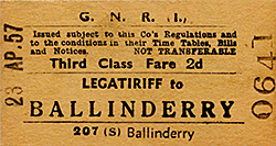During this period the UTA was busy closing lines throughout Northern Ireland but the joint nature of the GNRB arrangement staved off closures on the former GNRI system until 1958. Frustrated at not being able to close the lines of the former GNRI the Northern Ireland government dissolved the GNRB in May 1958. They divided the assets between the two states depending upon which side of the border they were located. Legatiriff Halt and the former GNRI lines in Northern Ireland became part of the UTA.