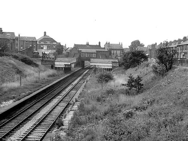 Initially there were no goods facilities at Levenshulme although there was a signalbox at the east end of the westbound platform. By 1900 a goods yard had opened on the north side of the line at a higher level and on the east side of Broom Avenue, the line is at a cutting at this pont. The goods yard comprised five sidings and a large brick built goods shed. One of the sidings passed through the goods shed, another passed in front of it where there was a loading bank and an awning over the line. There was also a 5 ton crane.