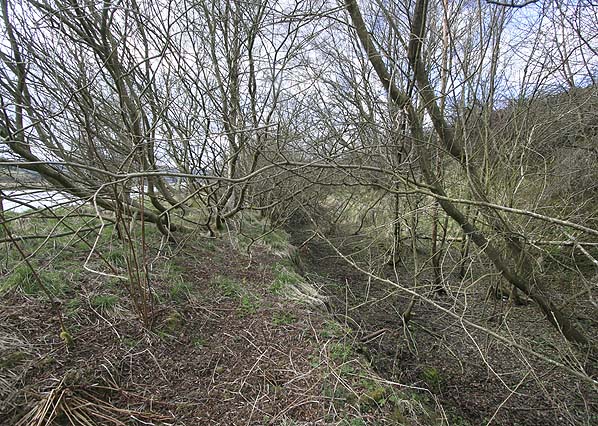 Lewiefield Halt in April 2009 looking northwest along the platform. Kielder Water