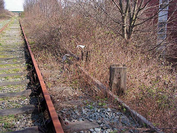 Surviving wooden platform supports from the westbound platform at Linacre Road Station in April 2007
