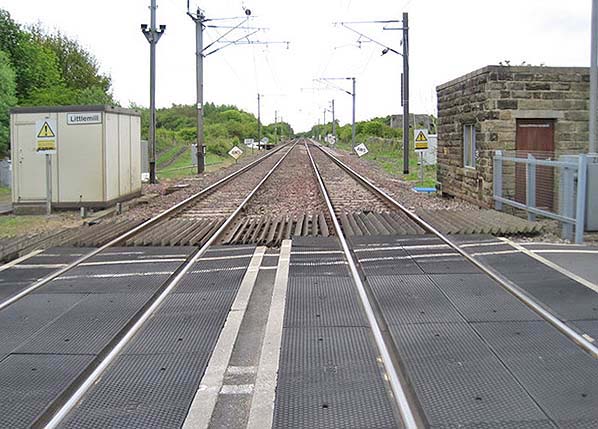 Looking south from Little Mill level crossing in summer 2012. The passenger station site is behind the photographer; the goods yard was over the crossing on the left.