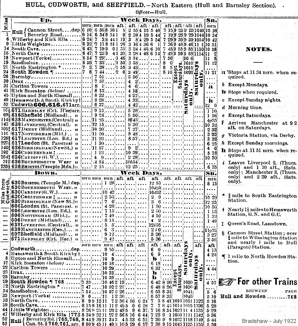Stations west of South Howden are not featured (except Kirk Smeaton), if you have information