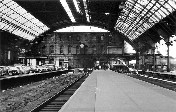 Looking along platform 3 and 4 towards the buffer stops at Liverpool Central station in April 1969. The large terminus station was a shadow of its former self by this time with only two platforms in use for the hourly DMU service that ran to Gateacre.