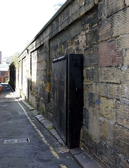 The west side outer wall of Liverpool Central station looking north in May 2011.