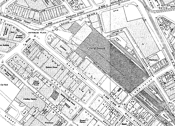 For many decades linkage of the separate railways in Liverpool city centre had been under consideration. There had long been a desire to create a through route from Liverpool Central to Liverpool Exchange, the terminus of the Lancashire and Yorkshire Railway on the northern side of the city centre, and to link the Mersey Railway with the other terminus stations. Nothing had come of the plans until 1966 when MALTS (Merseyside Area Land Use Transportation Study) was carried out by the local authorities. It recommended the creation of a loop railway from James Street linking the major lines, and a link railway from Liverpool Central Low Level to Liverpool Exchange. The deep level loop was proposed to pass through Liverpool Central and would have its own platform.
