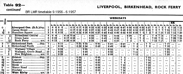 The British Railways timetable for September 1956 showed 260 departures from Liverpool Central LL on weekdays, with trains every few minutes from 6.00 am until 11.33 pm. The Low Level platforms were fitted with LMR totem signs which were unusual in being 4ft in length, 3ft being the standard size. The main line platforms did not receive totems. |
