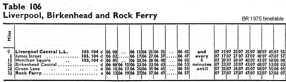 At the time of opening regular trains ran from the Mersey Railway’s Liverpool Central station to Birkenhead Park and to Rock Ferry. They were steam-hauled by specially built locomotives, designed to create less smoke. Nevertheless the tunnels did fill with smoke and the environment of Low Level station soon became unpleasant. At the time of opening it had |