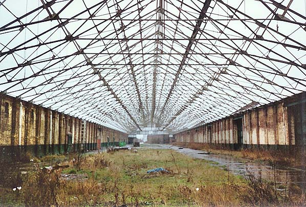 A view looking south along what would have been the site of platform 1 at Liverpool Riverside station on 22 February 2013. The view is taken from a similar position from the south looking view of 1990 above.