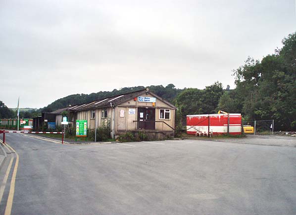 Llandysul goods yard in August 2008. The large concrete paneled building is a grain warehouse, probably built during WW2.