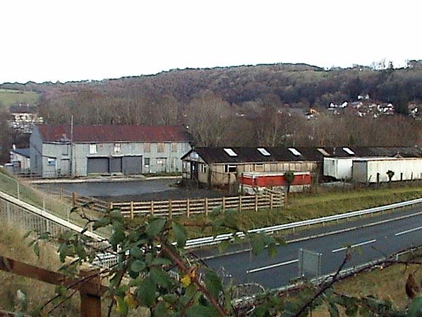Looking east across the site of Llandysul station (now a road) towards the goods