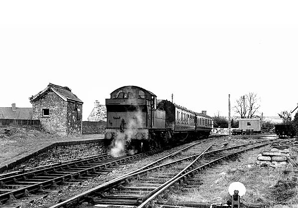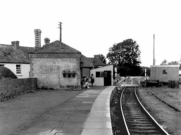 The station was downgraded to a halt c. September 1956 but remained staffed to control the level crossing and goods yard which remained open until closure of the line to passengers in 1962. By the time the station closed the loop had been converted into a siding. By 1968 the station building had been demolished.