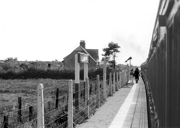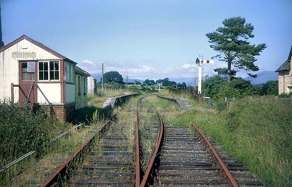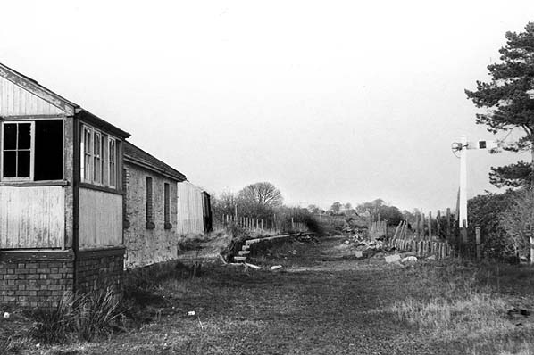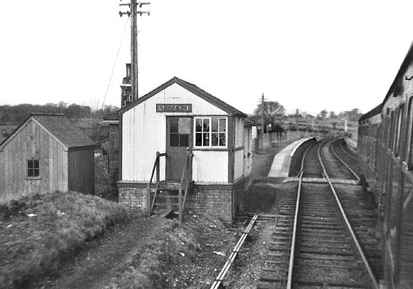 South of the original station building, on the west side of the line, was the small timber signal box which controlled the passing loop at Llangybi. It was a standard LNWR box with a 15-lever frame, but it measured only 12 x 12ft and stood only 8ft 6in above the ground. The token exchange equipment was installed in the original station building. |