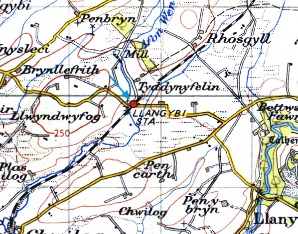 With the outbreak of the Second World War an emergency timetable was introduced from 11 September 1939, and Llangybi had only three trains in each direction on Monday-to-Saturday. The service was improved from 1 January 1940 when six trains ran in each direction on Monday-to-Saturday. During the winter of 1946/47 the passing loop at Llangybi was |