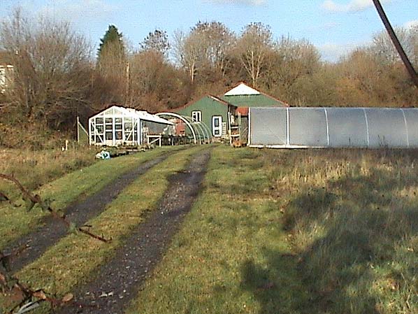 Looking north-east at Llanpumpsaint goods yard in November 2010. The goods shed seen in the background is the only railway building still standing.