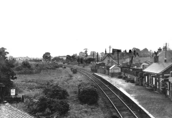 Llanwnda station looking south from the Pwllheli Road overbridge in the 1940s. The station goods yard appears to be busy at this time.