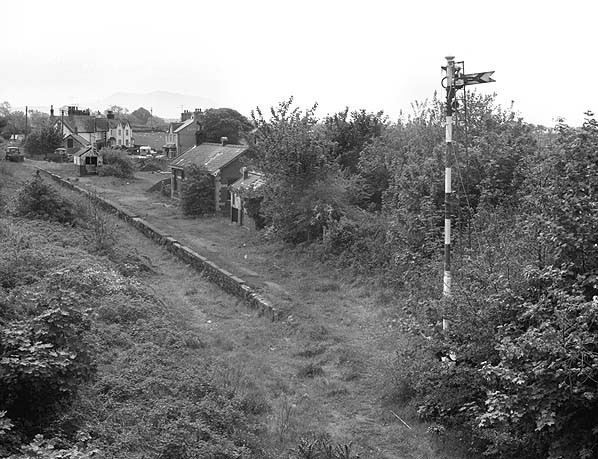 ![]() Station Name: LLANWNDA![]() Llanwnda station in the early 1970s, looking south. The signal, seen to the right, was the distant signal for Dinas station, where there was a passing loop; it was controlled from a signal box at Dinas station. Photo from the Les Fifoot collection ![]()