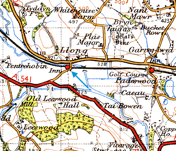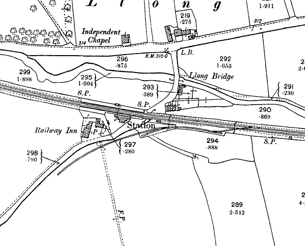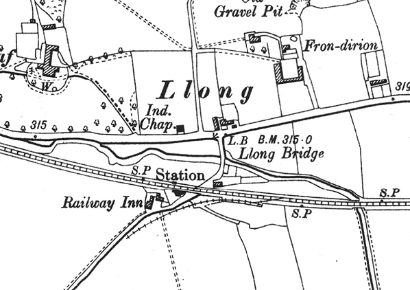Notes: Llong station was situated on the Mold Railway Company (MRC) line that linked its namesake to the Chester & Holyhead Railway (CHR) at Saltney Ferry. The line was opened on the 14 August 1849 and originally there were five stations including Llong. The station was located a short distance to the small settlement of Llong just off the Mold and Chester Road (the present day A5118).