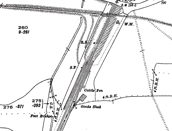 In the second half of 1863 work began on doubling the main line between Oswestry and Llanymynech and it was completed by 15 February 1864. A down platform (Newtown direction) was provided with a simple wooden waiting shelter. It was reached by a sloping pathway from the B4396 road.