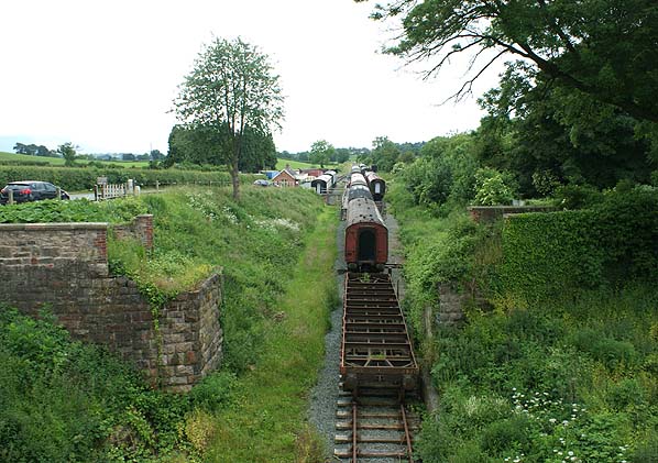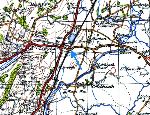 To the north of the goods facilities and just to the south of the road overbridge the Crickheath Tramway passed over the CR main line on a bridge. The tramway linked quarries at Porthywaen to the Montgomery canal at Crickheath Wharf.