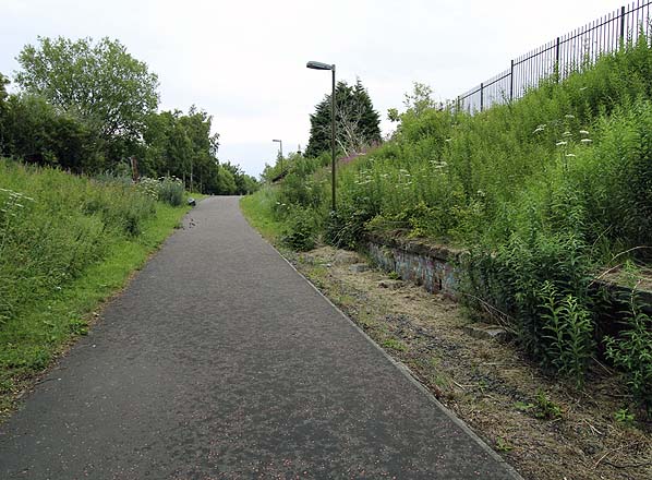 Looking north-east towards Loanhead station in July 2011. The wall on the right