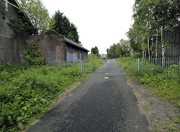 Loanhead station looking south-west in July 2011. The trackbed has been filled up to platform level.