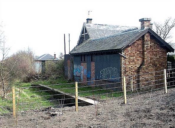 ![]() Loanhead station looking north east in April 2004. At this time track still ran into the goods yard which can be seen in the background.