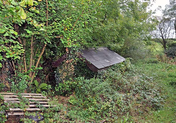 Login station ground frame cabin buried in undergrowth two miles from the station in 2012.