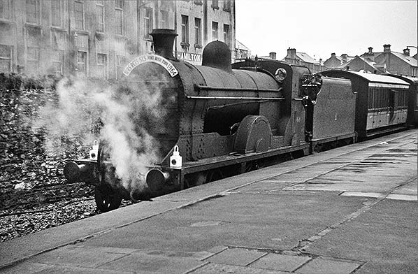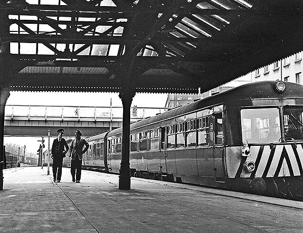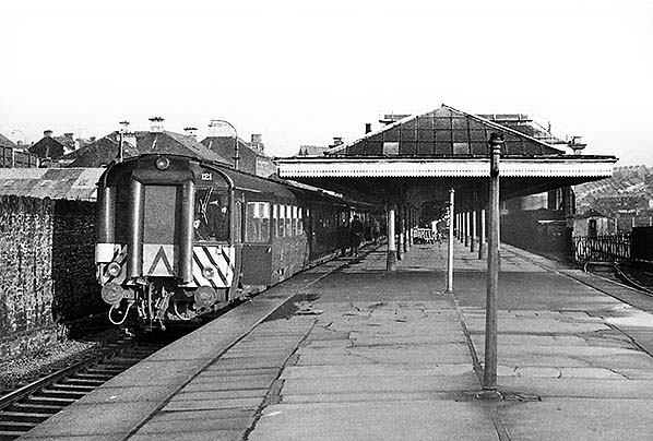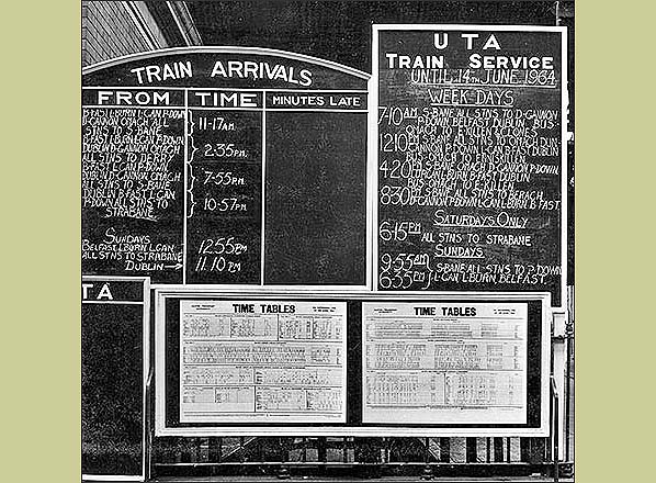 ![]() Information boards at Londonderry Foyle Road seen in May 1964. The passenger train service that was operated at this time is clearly shown on the boards. Photo from the Donegal Railway Heritage Centre collection ![]() The main entrance of Londonderry Foyle Road station seen from the quayside in May 1964. The entrance building with its distictive towers was built by the INWR in 1870. In the foreground the mixed gauge track of the LP&HC can be seen. Running between the station and the wall is the line that ran into the NCC City Goods station. These had been out of use since August 1962. Photo from the Donegal Railway Heritage Centre collection ![]() Londonderry Foyle Road station looking north-east in May 1964 from underneath the Craigavon Bridge. Photo from the Donegal Railway Heritage Centre collection ![]() The GNRI built refreshment rooms at Londonderry Foyle Road station seen in May 1964. The GNRI Great War memorial can also be seen above the bench. This was one of three GNRI memorials errected to the memory of employees who lost their lives in the war (the others were at Belfast Great Victoria Street and Dublin Amiens Street) Photo from the Donegal Railway Heritage Centre collection ![]() On 13 June 1964 the IRRS 'All Ireland' rail tour is seen at Londonderry Foyle Road prior to departure for Portadown and Dublin. At the head of the train is UTA 4-4-0 S class locomotive number 60 'Slieve Donard'' (ex GNRI 172). The engine was built in 1913 and withdrawn in May 1965. Directly behind the engine is a CIE six wheel full brake van. This was the last rail tour to visit Foyle Road. Copyright photo from Ernies Railway Archive ![]() During the last months of operation the crew of BUT railcar 121 pose for the camera at Londonderry Foyle Road station on 1 January 1965. Photo by E M Patterson ![]() On 1 January 1965 BUT railcar number 121 (ex GNRI 701) sporting UTA livery is seen at Londonderry Foyle Road on a Belfast Great Victoria Street service. This railcar was one of the double ended type and it was the first to be delivered in June 1957. Photo by E M Patterson ![]() Copyright photo from the Derry Journal ![]() Copyright photo from the Derry Journal ![]()