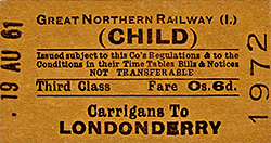 From 1860 Moville on Lough Foyle had become a calling point for Atlantic liners to Canada and the USA. Passengers were brought down Lough Foyle by tender ships which sailed from the quays adjacent to Foyle Road station. The INWR ran special trains from Dundalk to Derry to connect with the Atlantic liners. These became known as the ‘Canadian Mail” and they ran from 1860 to 1869 on Fridays only. In 1863 the Canadian Mail left Dundalk at 10.55am arriving in Foyle Road at 3.00pm, which gave passengers more time to transfer to the tenders at the quay. Passengers on this Canadian Mail train were mainly emigrants, so they only paid a special half fare to Derry under the INWR. This traffic carrying emigrants to Canada and the USA would continue up to 1939 before it finally ceased.