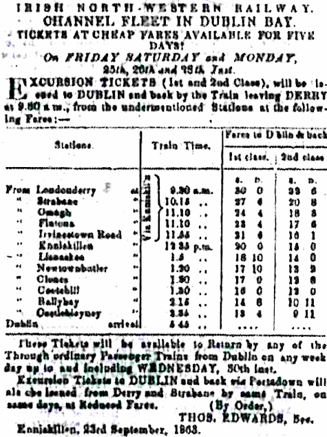 Excursion trains were also run at this time such as the special services that were operated to Dublin shown on the newspaper advertisement to the left.