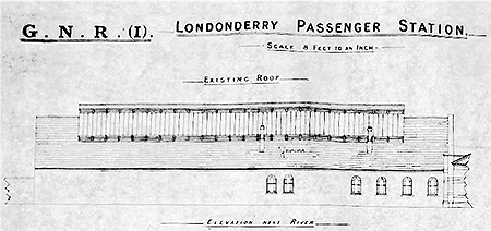 In 1868 Foyle Road station was described as being dilapidated and the INWR committed to improve it. In October 1868 a contract was awarded to Alex McElwee for the sum of £3,500 to carry out the works. As the new facilities were to occupy the site of the original station temporary arrangements had to be made. One of the goods sheds on the other side of the Carlisle Bridge was used as a temporary passenger station at this time.