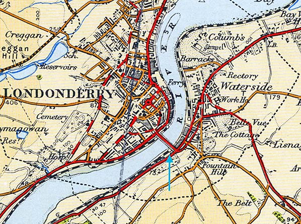 Victoria Road station was located on the eastern bank of the River Foyle close to the Carlisle Bridge (replaced in 1933 by the Craigavon Bridge) which provided access to Derry/Londonderry.