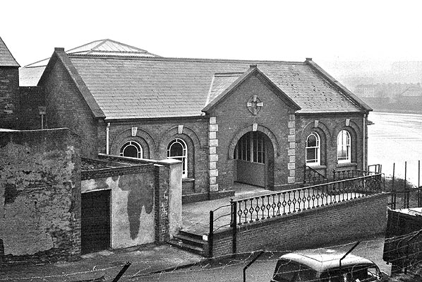 Copyright photo by Michael Bunch from the Donegal Railway Heritage Centre collection ![]() A view looking north at Victoria Road station on 20 November 1955 during the track lifting. Copyright photo by Michael Bunch from the Donegal Railway Heritage Centre collection ![]() Looking towards Londonderry Victoria Road station from the site of the engine shed on 20 November 1955. Whilst the main line had been lifted the engine shed road and associated sidings were still in situ. The water tank can be seen to the right. Copyright photo by Michael Bunch from the Donegal Railway Heritage Centre collection ![]() Londonderry Victoria Road station looking north on 12 December 1959. The starter signal had survived the track lifting and was used, when in the off position, to indicate when the wholesale grocer, that had taken over the site, was open. Photo by Graham Hoare with permission from the Irish Railway Record Society ![]() The roadside entrance building at Victoria Road station seen on 12 December 1959.