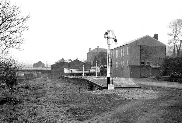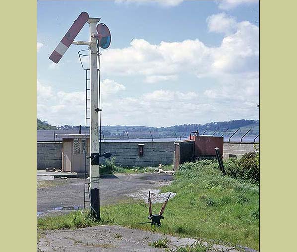 Photo by Graham Hoare with permission from the Irish Railway Record Society ![]() A view looking towards the north-west with the south end of the Londonderry Victoria Road platform in view in 1971. At the end of the platform an original signal can be seen. Photo by Pete Leigh ![]() The home starter signal at Victoria Road station survived closure. It is seen here in 1971. It was used at this time to indicate, when in the off position, that the business then occupying the station was open. Photo by Pete Leigh ![]() Londonderry Victoria Road station looking south in 1970.