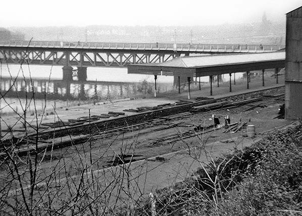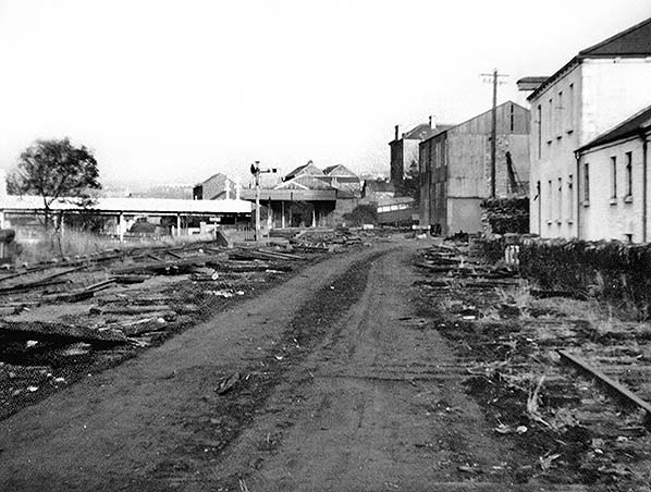 ![]() Londonderry Victoria Road station looking north on 20 November 1955. Track lifting was at an advanced stage. The starter signal can be seen at the end of the platform. It survived the lifting of the track.