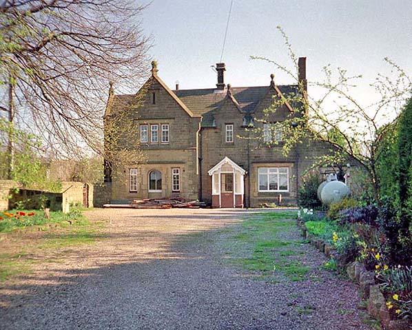 ![]() The western elevation of Longhirst station building is seen in 1990. The splendid Newcastle & Berwick Railway building of 1847 is notably asymmetrical in design, its three facing gables being of contrasting sizes. The porch is of the same style as its neighbour on the northern elevation.