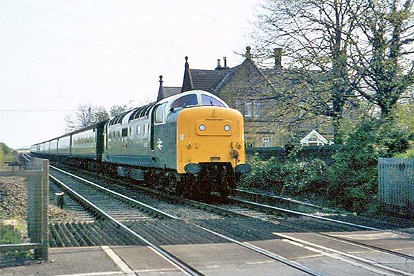 Photo by Alan Lewis from his Ipernity photo gallery ![]() Looking south from Longhirst level crossing in May 1980 Class 55 Deltic No.55009 ‘Alycidon’ hauls an Edinburgh-bound express through the site of the disused station. Numbered D5009 until 1974, the locomotive was built at the Vulcan Foundry and entered service in July 1961. It hauled its last British Rail train on 2 January 1982 from Peterborough to Newcastle and is now owned by the Deltic Preservation Society. It has operated on the North Yorkshire Moors and Nene Valley railways and been on display at the National Railway Museum, York. 55009 is currently used on the