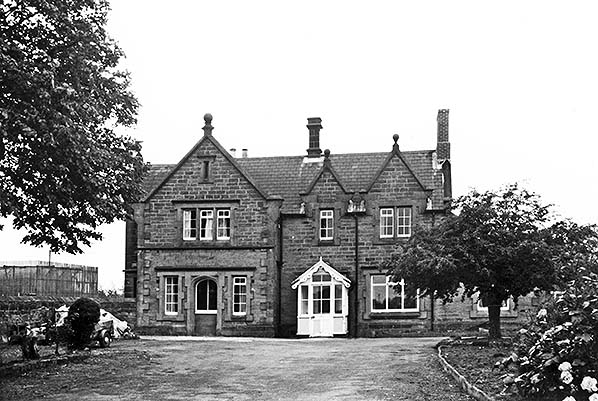 The western elevation of the station building at Longhirst is seen in September 1978. The splendid ‘Tudorbethan’ Newcastle & Berwick Railway building of 1847 is in residential use. It is notably asymmetrical in design, its three facing gables being of contrasting sizes. The porch is of the same style as its neighbour on the northern elevation.