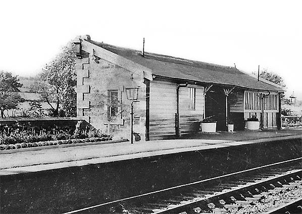 This undated photograph shows the waiting shelter on the west (down) platform of Longhoughton station. The pent-roof structure is of sandstone, with prominent quoins, and it is thought that it was originally open-fronted, the NER later enclosing it with timber and glass. The building survived into the 1950s but was replaced with a simpler structure a few years before the station closed.