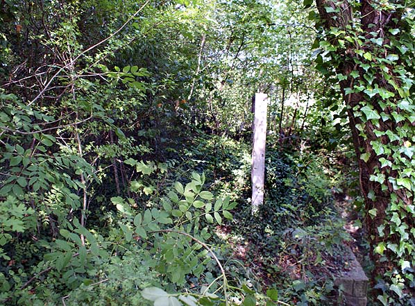 ![]() Looking east at the site of Longton Bridge station from the west end of the up (Southport-bound) platform in July 2011. Trees obscured the view over Liverpool Road where the main station building had been. In July 2011 the bridge which had carried the line over the road was gone and a housing estate was located on the east side.