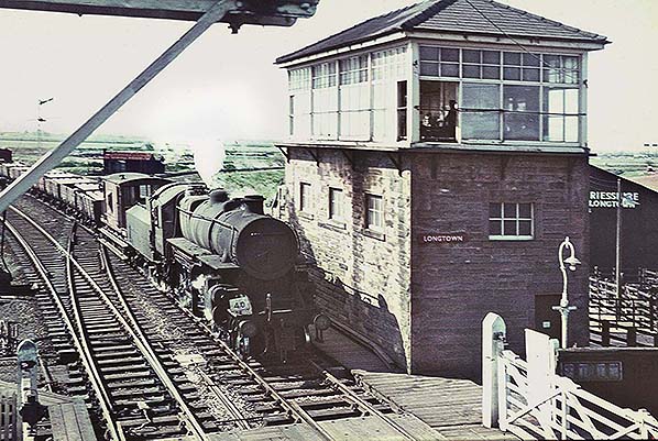 There have been three signal boxes at Longtown. There was one box at Longtown Junction south of the level crossing on the down side of the line which survived until closure. Longtown North box controlled access to the goods yard. The third was the short-lived Longtown Viaduct box.