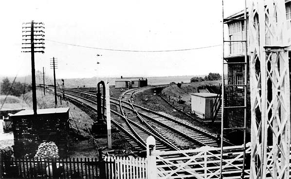 Longtown junction seen from the station footbridge in 1960s. The Waverley route to the left with the Gretna line to the right.