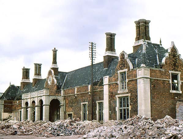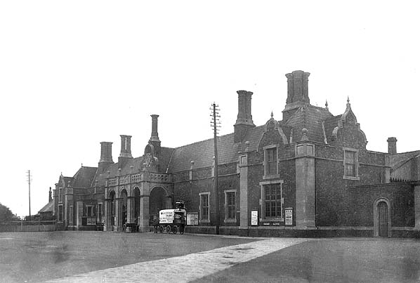 The main station building was in neo-Jacobean style with curved red-brick stone-capped gables, a balustraded roof with linked chimney stacks and a superb stone round arched carriage porch. A station master’s house was added a few years after the station was built, very much in sympathy with the main structure but of a more traditional style. A footbridge |