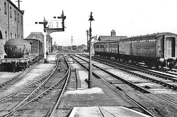 ![]() Looking north from Louth station c. early 1950s. The goods shed is seen on the left and Louth North signal box in the background. Photo