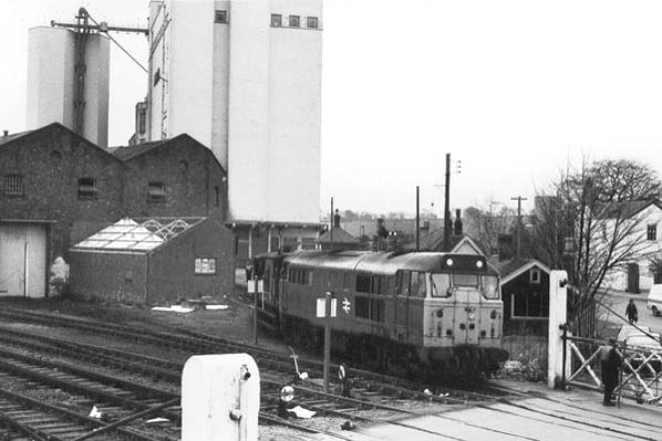 Louth goods shed seen from Louth North signal box in April 1979