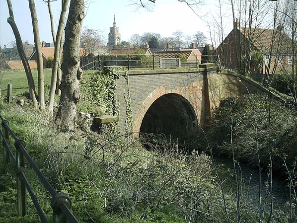 The road bridge at south end of the station that is now just a footpath. Seen in February 2009