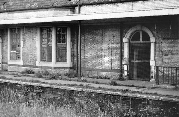 Louth station - door into booking office on down platform c.1977. The subway steps can