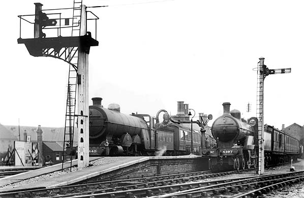 Louth station in July 1936. A Mablethorpe train stands in the bay platform on the right.